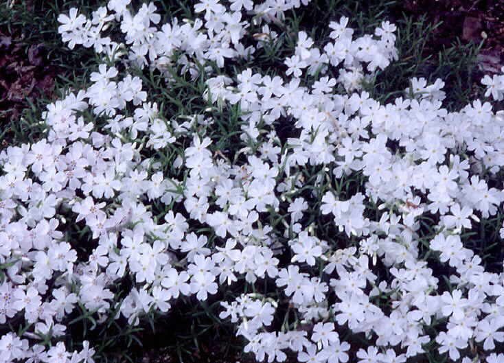 has heads of white flowers. More mildew - resistant than Garden Phlox. Likes