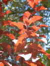 green heart - shaped leaves. Red - purple fall color. Tight branch crotches