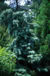 height of 5' after 10 years. Long, soft needles. Blue green foliage. |