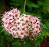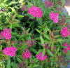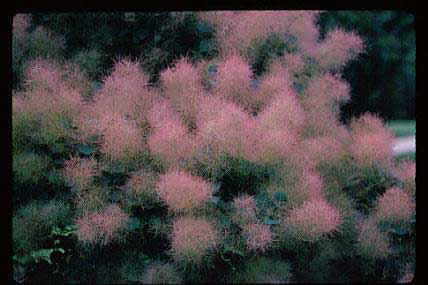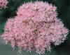 flowers on a compact shrub in late summer. Seed clusters resemble