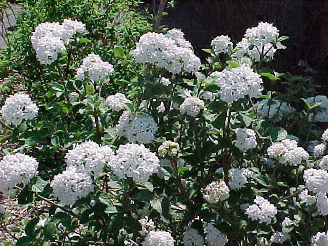 snowball flower heads held above the foliage, lining the branches in mid-May.